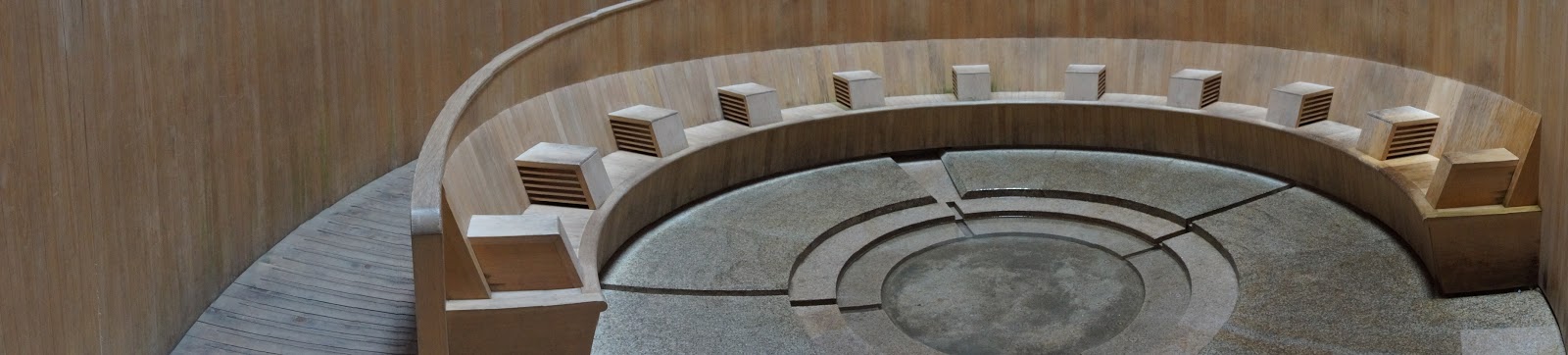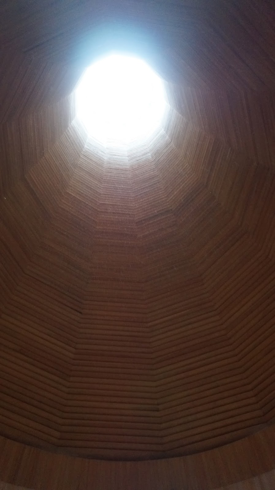 往底下走,是一個很螺旋的空間,中心的部份會滴雨,其他全是木頭做的,應該是要呼應自然就是會下雨。