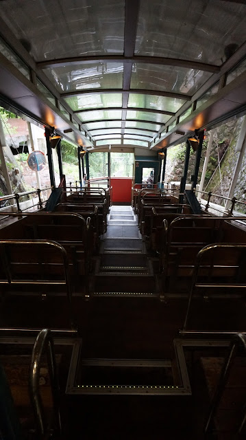 上車後,纜車的第一節是無玻璃的,有人想坐嗎?哈哈全車只有四個乘客。還是有陣陣的大雨喲!