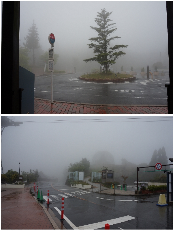 要來日本幾次才會遇到霧呢?哈哈!各有各的美景,這叫人心,也叫自然。有時候一陣大風吹來連站牌在那裡都看不到呢!