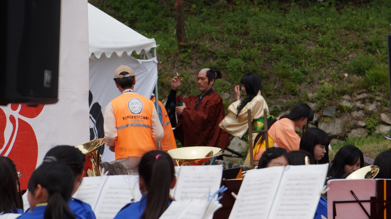 我們了一下DM的簡介,今天應該是安土城這裡全部居民都出動的大日子,而且還有扮演戰國時代各武將的遊行。可是估計我們到的時候遊行應該已經結束了,有點小失望。坐車十分鐘就到了,看的到廣場上已經有表演了,而且祭典中該有的小吃攤也出現了。