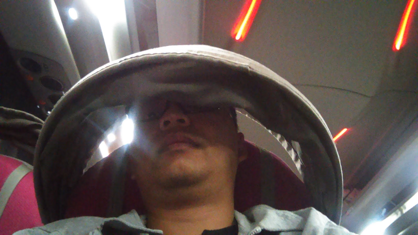 上車後因為會吵到人的關係就沒拍了,大致說一下。夜行巴士會把窗戶全部用布包起來,所以一進去除了燈光就一片黑。每個人座位上都有一個罩子,一拉下來就與世隔絕了。附上毯子,其實很好睡啦,腳可以伸到前座下面大約身體可以躺個130度。可是因為不是平躺所以還是有諸多不舒服的地方。如果你想要全躺的椅子可以呀,就加錢買個有床型的貴賓席就可以了。