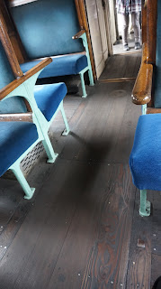 找到我們的座位後就可以開始拍照了。離開車時間還早,可以看的出來是很久的爺爺火車,連天花板都是古老的電風扇。