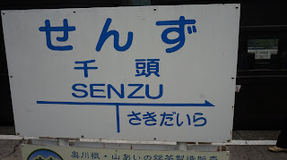泡完湯回到了車站還有二十分鐘才開,這時看到剛剛的列車長坐在地上睡著了,然後車站內的櫃檯人員也蓋著外套睡著了。我真的覺得這裡的步調真是慢啊。泡完湯又走了一大段路我們兩個也好想睡啊。等開車後整列車只有我們兩個和車長,大家就可以知道這裡多麼偏遠了。在車上不知不覺的我們睡著了,等起來後已經到終點站千頭。可是啊看我們的臉就知道又是無可奈何的要等車了,又要快一小時。千頭站外有個溫泉飯店然後四周的店都關了,等沒有關係,無聊才是最可怕的事情。