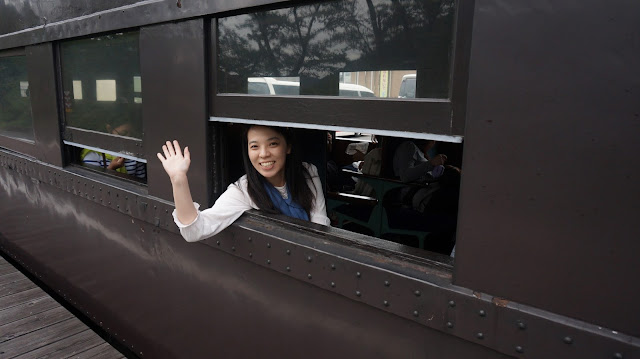 這就是目前少數還用柴電機車推進的小火車,每節車箱都不相連,所以你從第一節要去第二節,必須先下車再上車,有點麻煩,可是待會還有很好玩的事情。