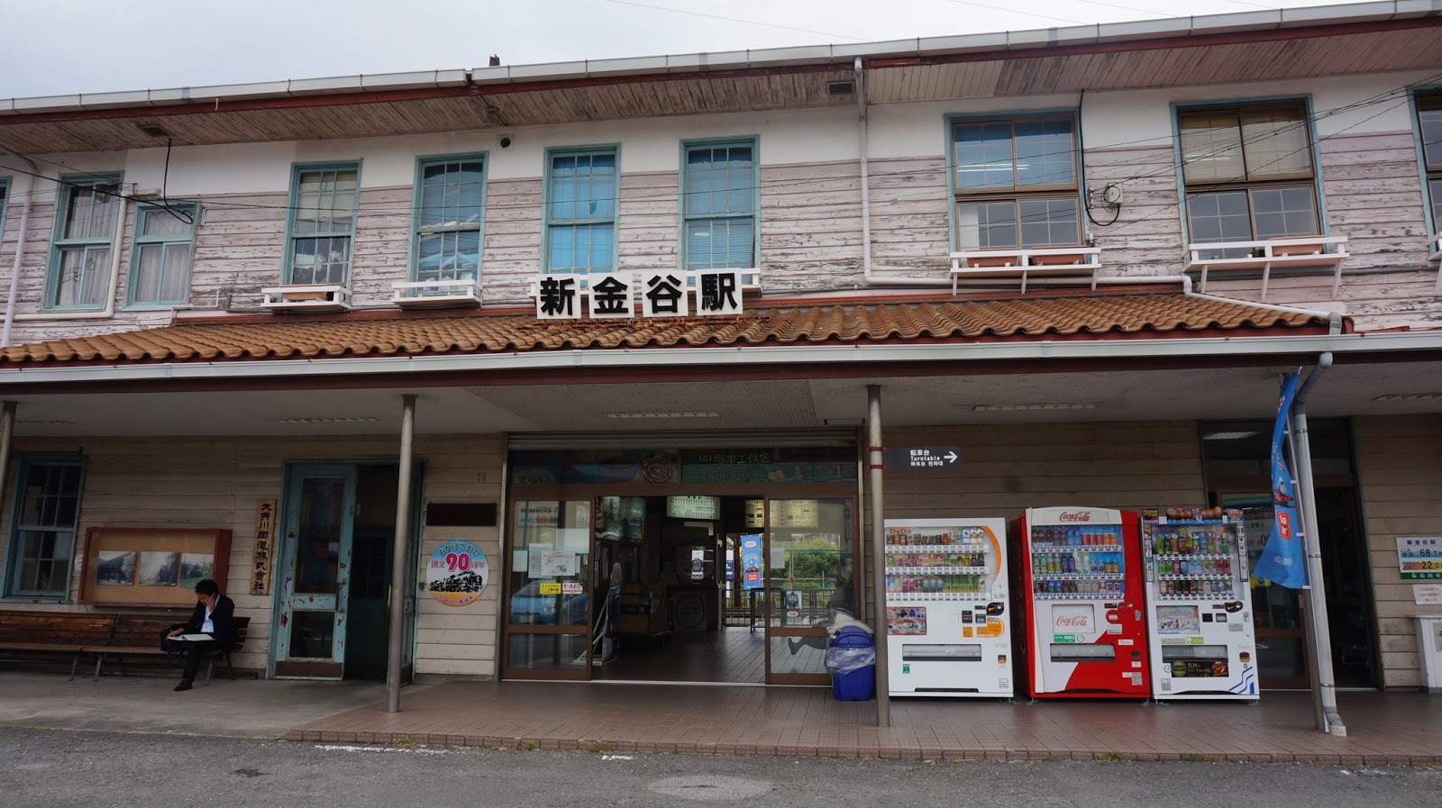 終於我們到了終點站接岨峽溫泉站,但是等著我們的是悲慘的情況。在車站附近所有的溫泉店竟然都沒開,可能是因為不是假日平常也不會有遊客過去。