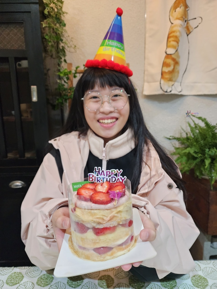 另外魔法氛子也有推出小尺寸的4吋蛋糕,Yelena去年生日就是訂他們的4吋草莓千層,這很適合人口少的家庭,或是在外面餐廳慶祝生日,吃完飯後4吋的蛋糕剛剛好。