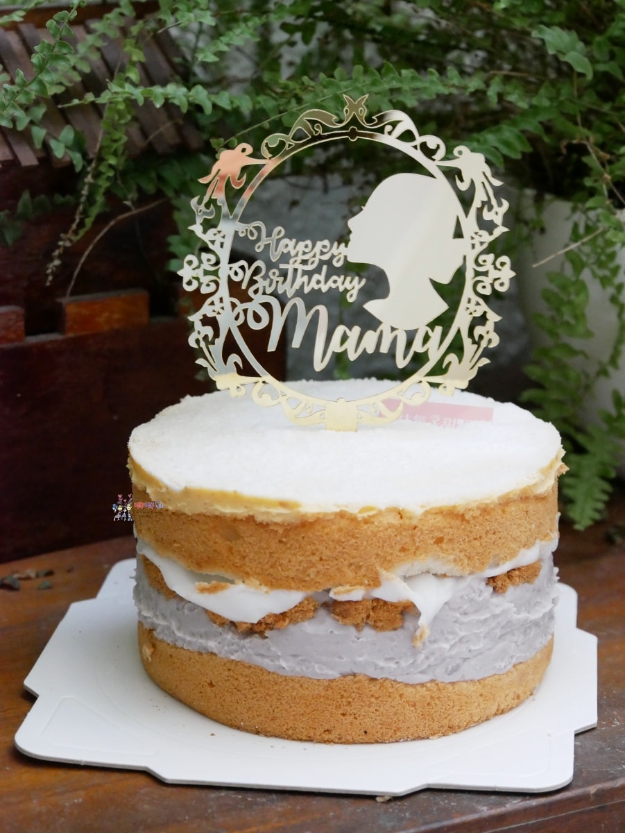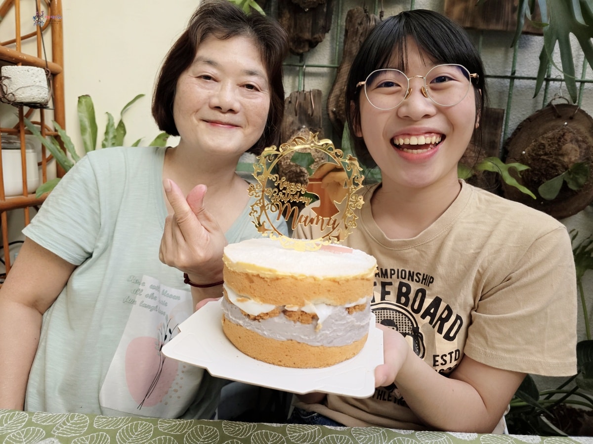 插上母親節的插牌後是不是瞬間高級感起來了?而且芋火焚身沒有用鮮奶油做裝飾,是一顆主打料多實在的蛋糕,很適合不喜歡吃鮮奶油的人。