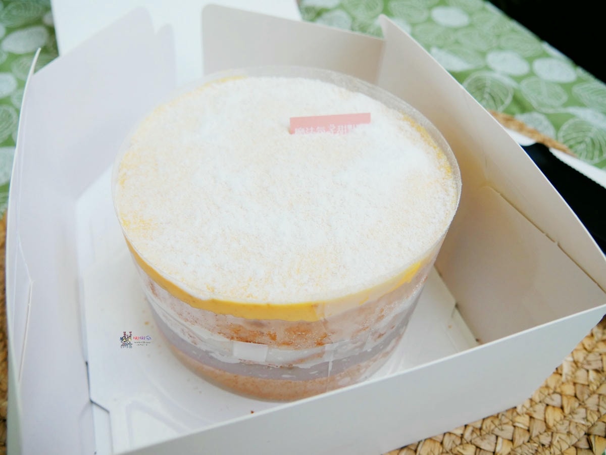 之前我們吃過的芋火焚身是長條狀的,這次則是6吋並且加料的Plus版,拿在手上沉甸甸的,一點都不像是6吋的蛋糕。