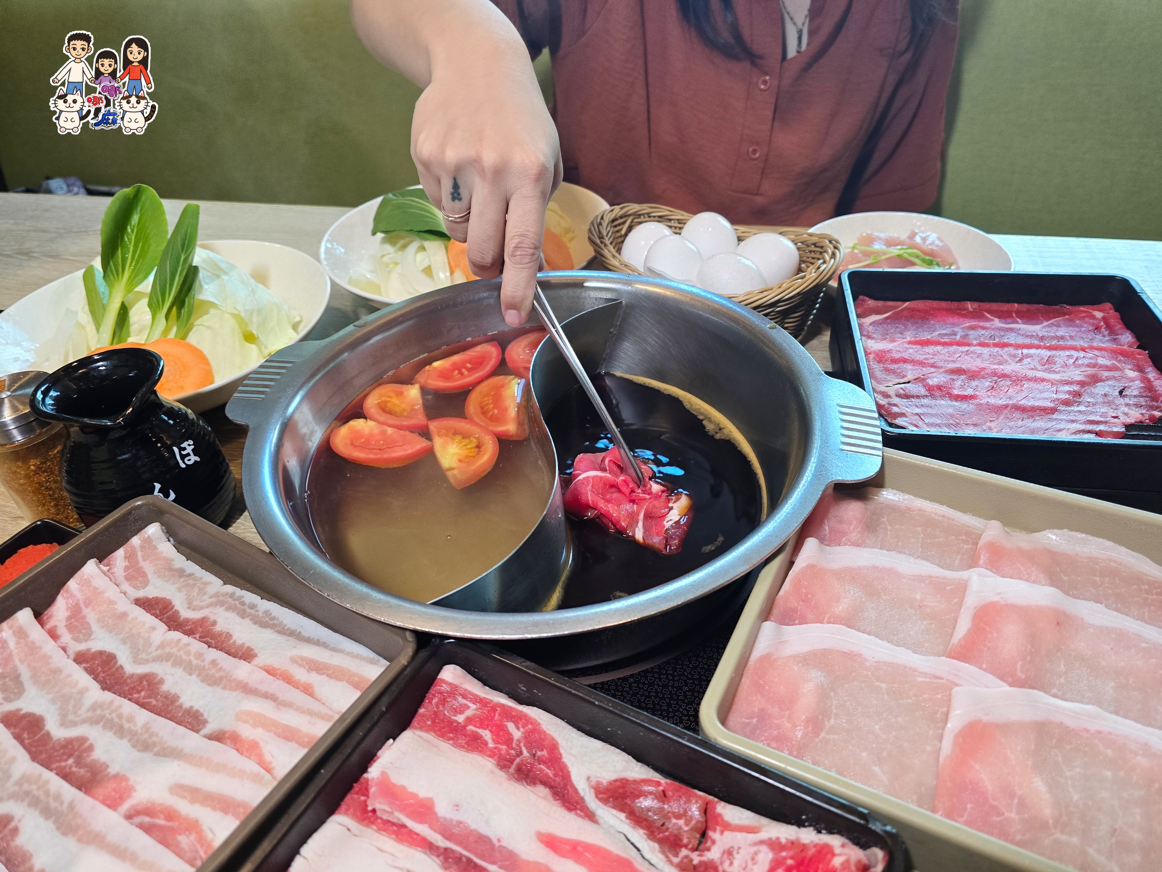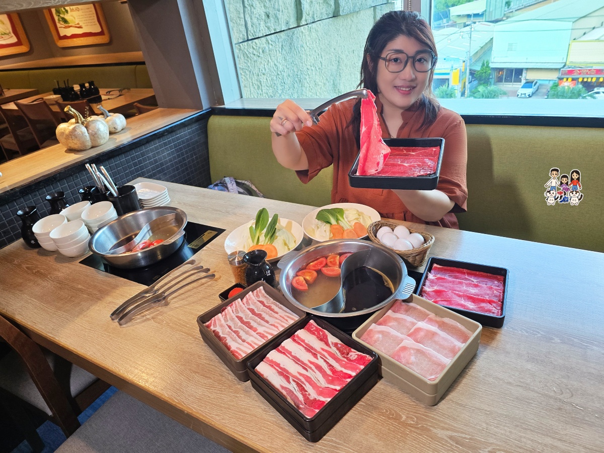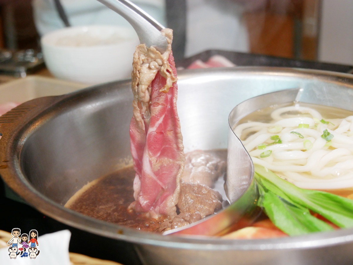 👉 肉品選擇:五種肉類(牛、豬、雞),無限續點。肉片新鮮,油花漂亮,放進壽喜燒鍋裡涮個幾秒就能入口,超嫩超香。