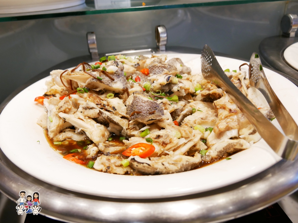 清蒸魚塊: 魚肉處理得很細緻,調味剛剛好,吃得出魚肉的鮮甜,這點真的讓我對我家牛排的熱食區刮目相看。