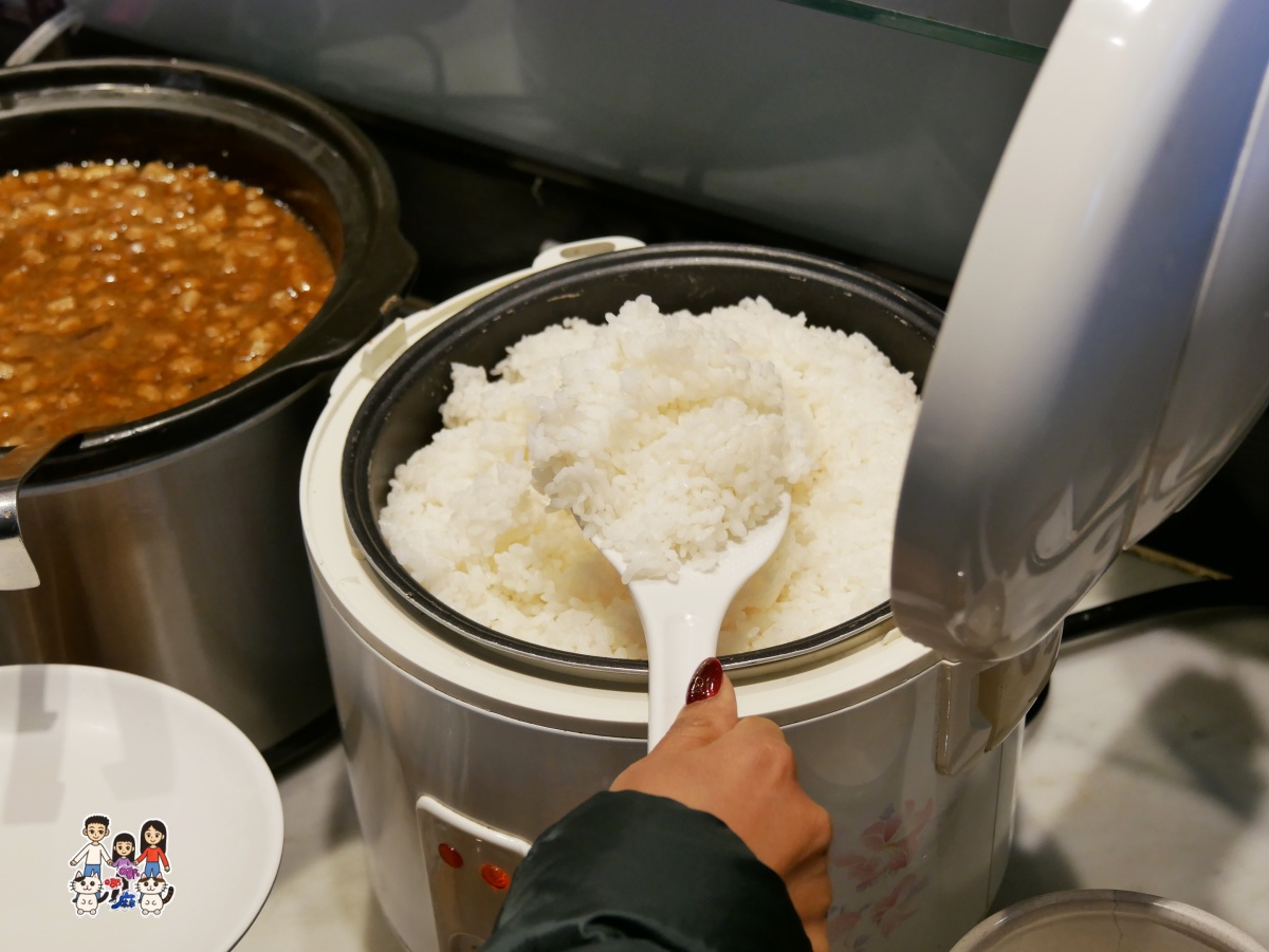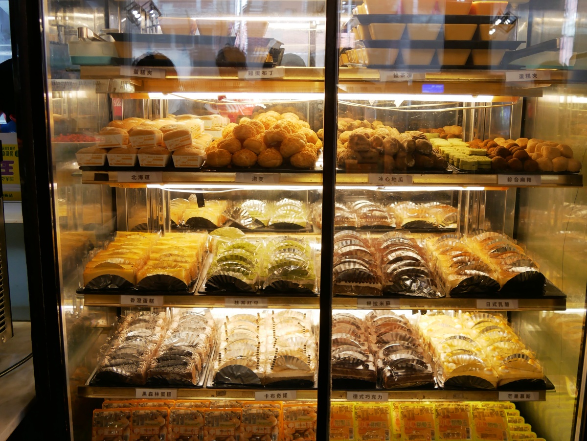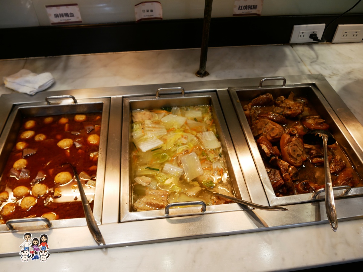 我們拿了幾塊蛋糕,吃起來口感還蠻濕潤的,不會太甜,很適合當作飯後甜點。旁邊還有綠豆糕、麻糬、中華豆花…等等,選擇真的很豐富。