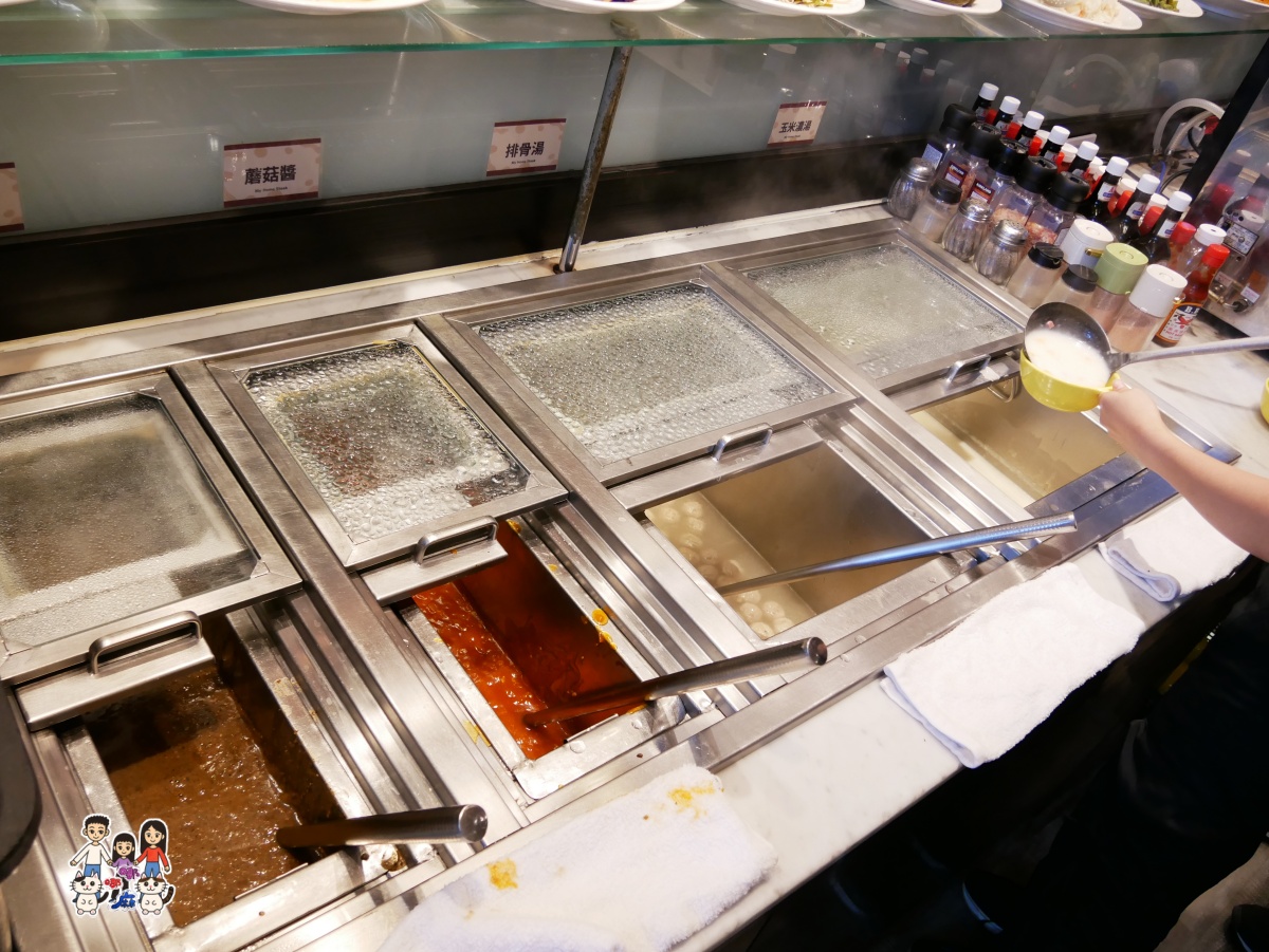 醬料和湯品區可以選傳統鐵板牛排必備的玉米濃湯,或是排骨湯。