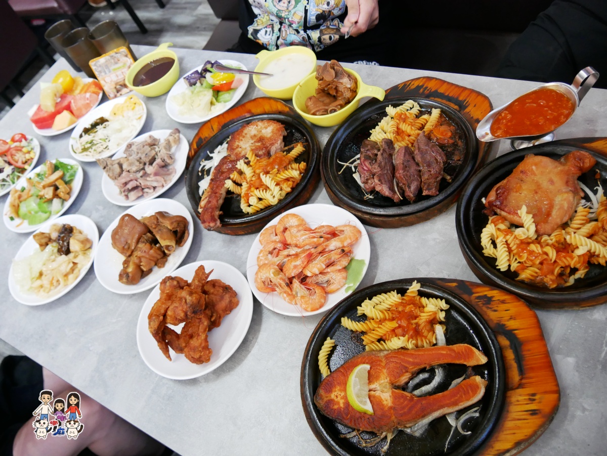 以前大家都會笑說「我家牛排是被牛排耽誤的 Buffet」,但這次來,我覺得他們根本是決定**「我不裝了,我攤牌了!」**。整個自助吧的陣容,從熱食、海鮮、甜點到水果,規模和品質都大躍進。整個環境也變得很舒服,寬敞明亮,超適合我們這種喜歡跟家人朋友邊吃邊聊的聚餐。